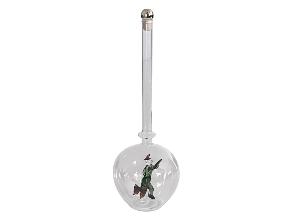 Skleněná ručně foukaná láhev s figurkou, myslivec, objem 500 ml