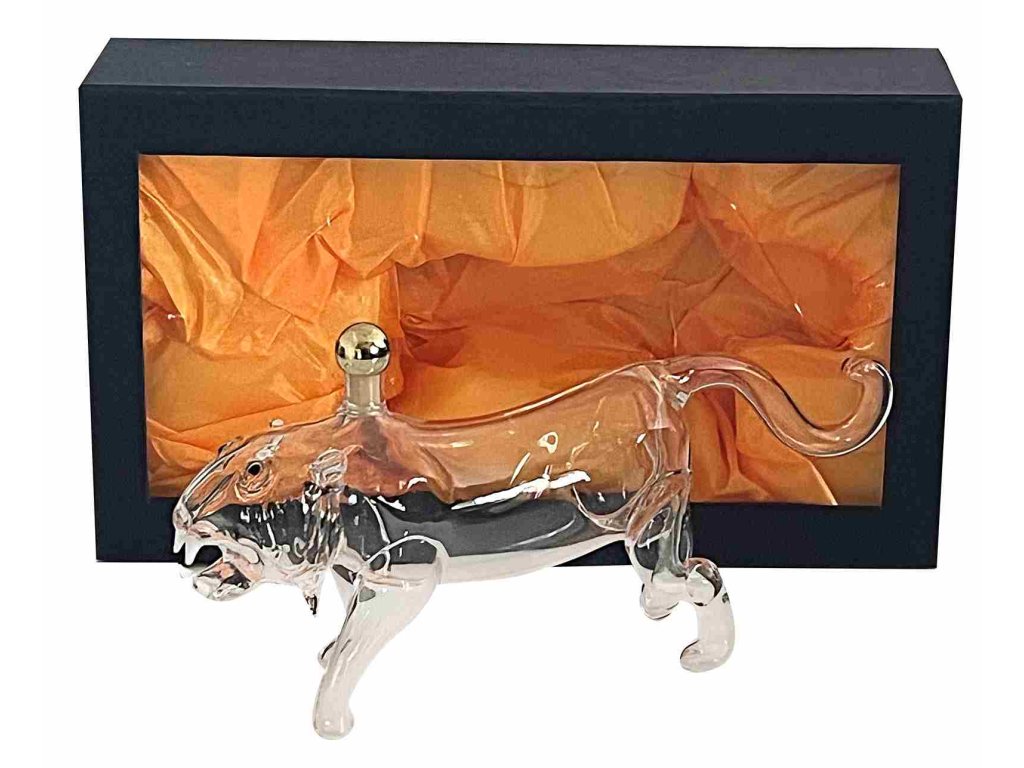 Skleněná ručně foukaná láhev tygr, 350 ml