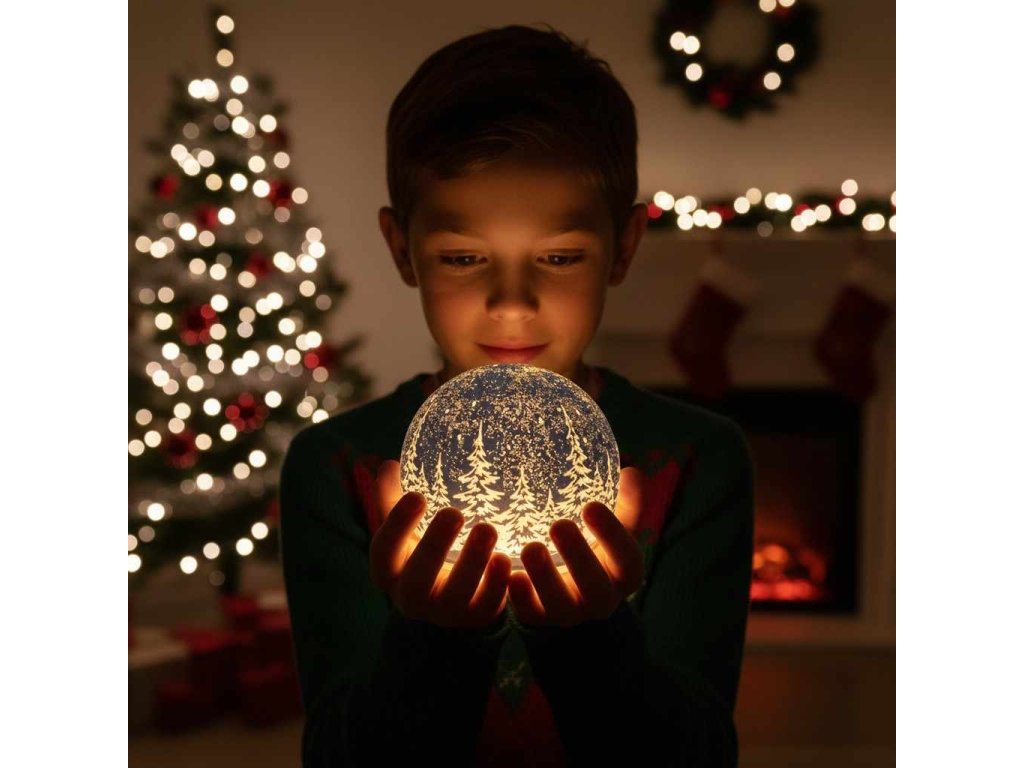 Ručně foukaná skleněná svítící koule s LED osvětlením S časovačem. Po zapnutí svítí 6 hod. poté se sama vypne a další den ve stejnou dobu zapne opět na 6 hod. Modrýý povrch s motivem zimní krajiny Průměr 10 cm Na 3 tužkové baterie AAA, baterie nejsou součástí balení. Krásná vánoční dekorace na každý stůlDoplňkové parametry