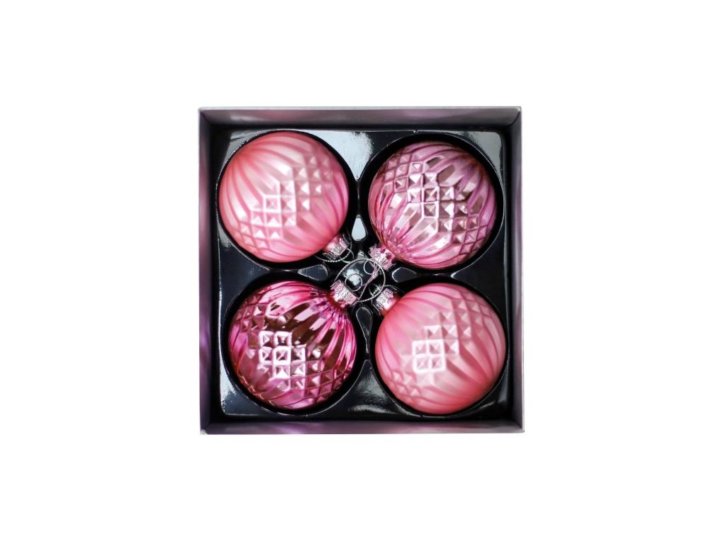 Skleněné vánoční koule růžové, průměr 8 cm, sada 4 ks