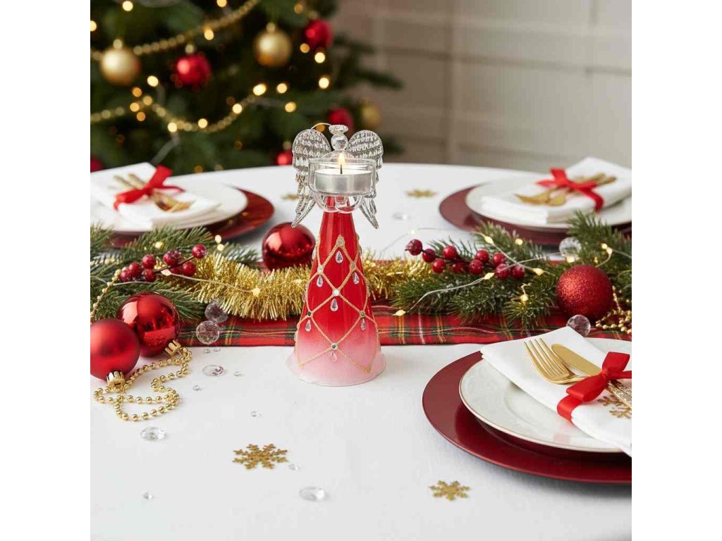 Skleněný anděl 20cm,na 1 čajovou svíčku, červený