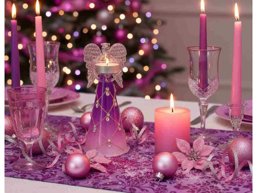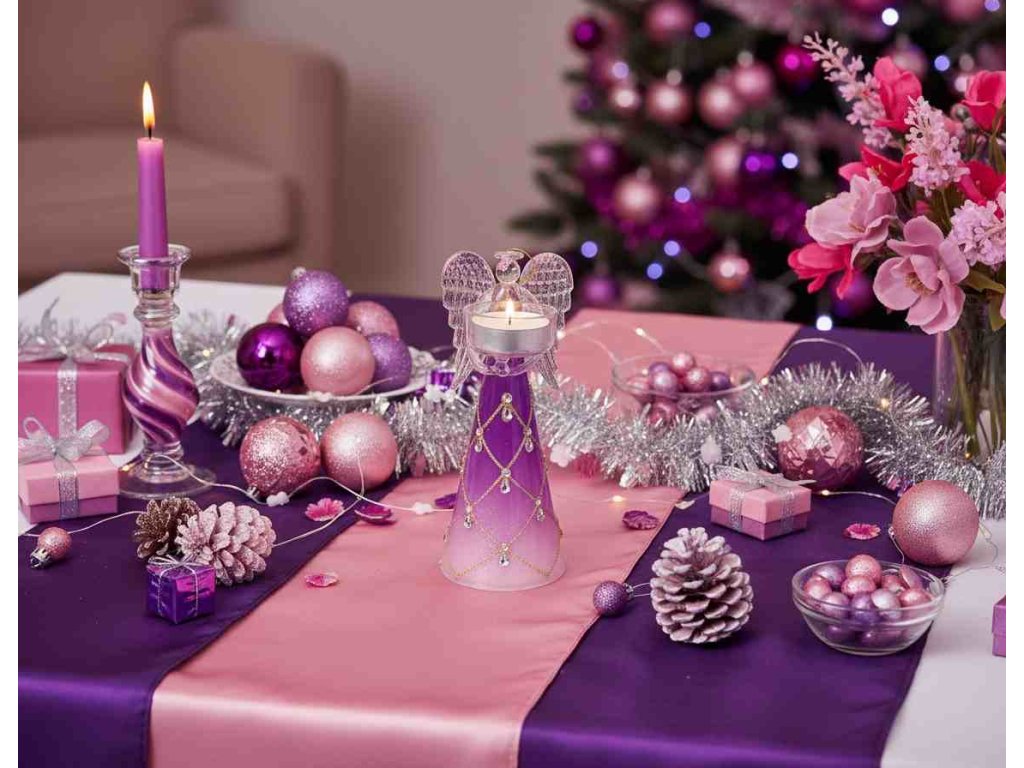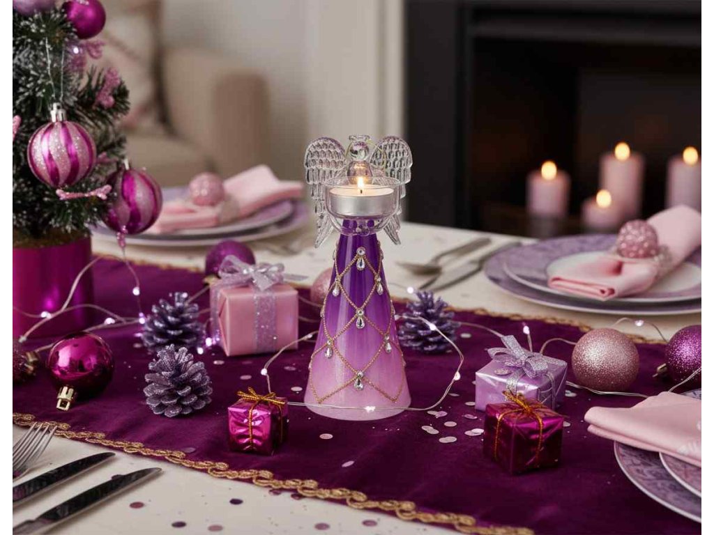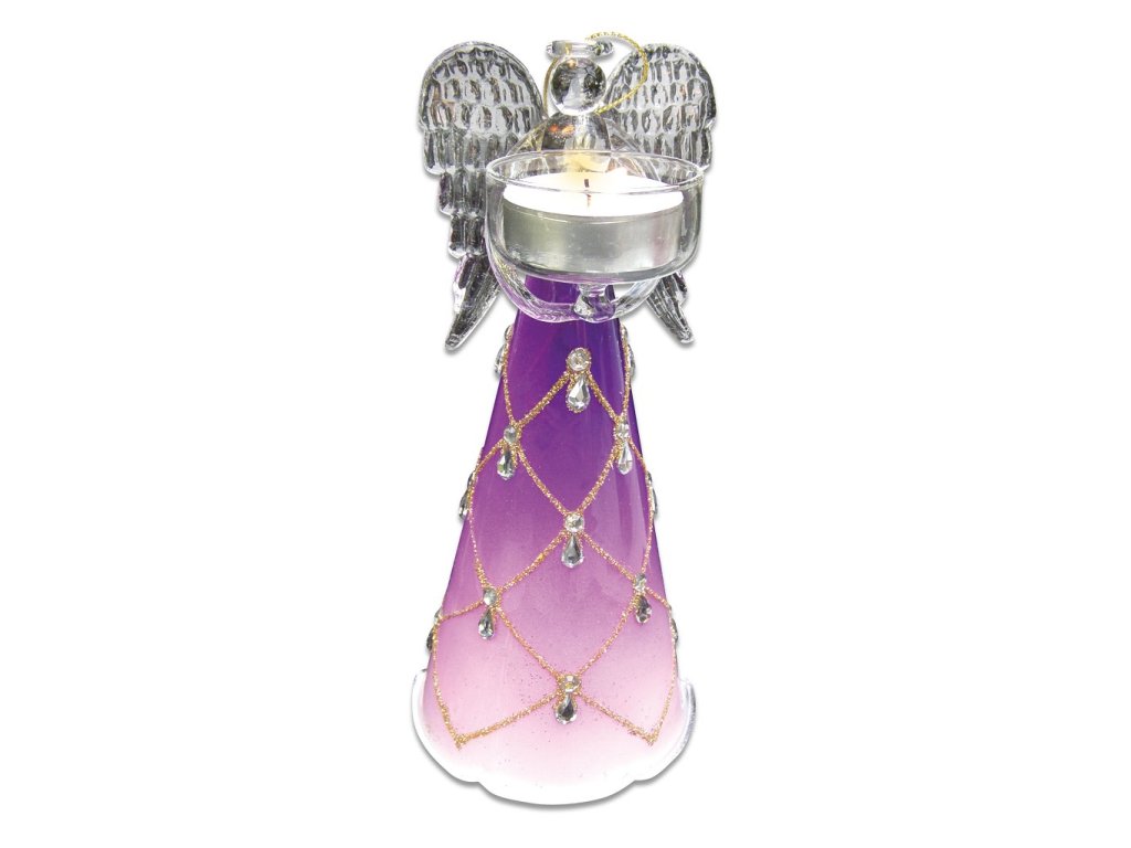 Skleněný anděl 20cm,na 1 čajovou svíčku, fialový