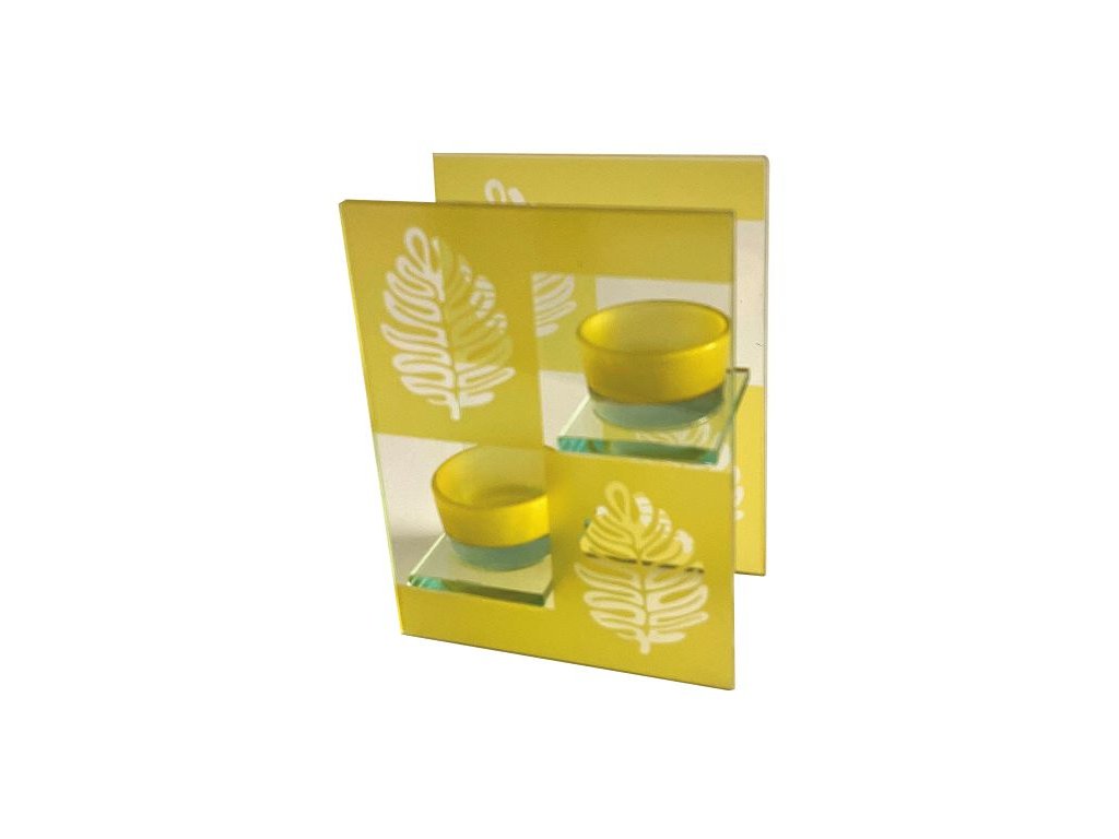 Skleněný svícen listy, na 2 čajové svíčky