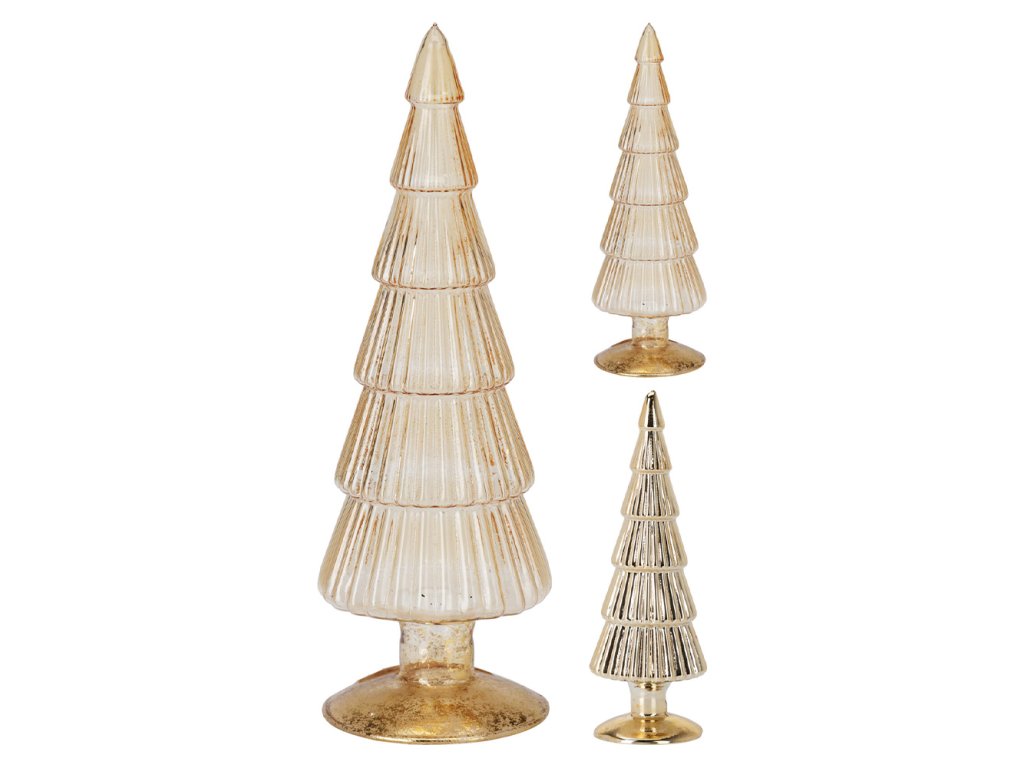 Skleněný vánoční stromek 34 cm, zlatá šampaň (2 barvy)