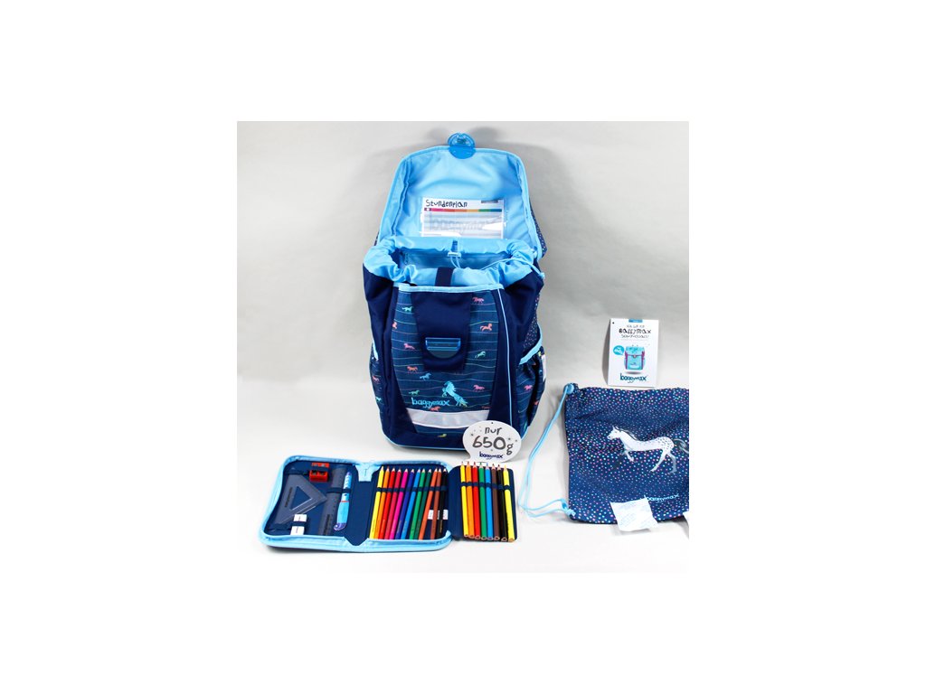 Školní aktovka - 3-dílný set, Baggymax Džínsový koník