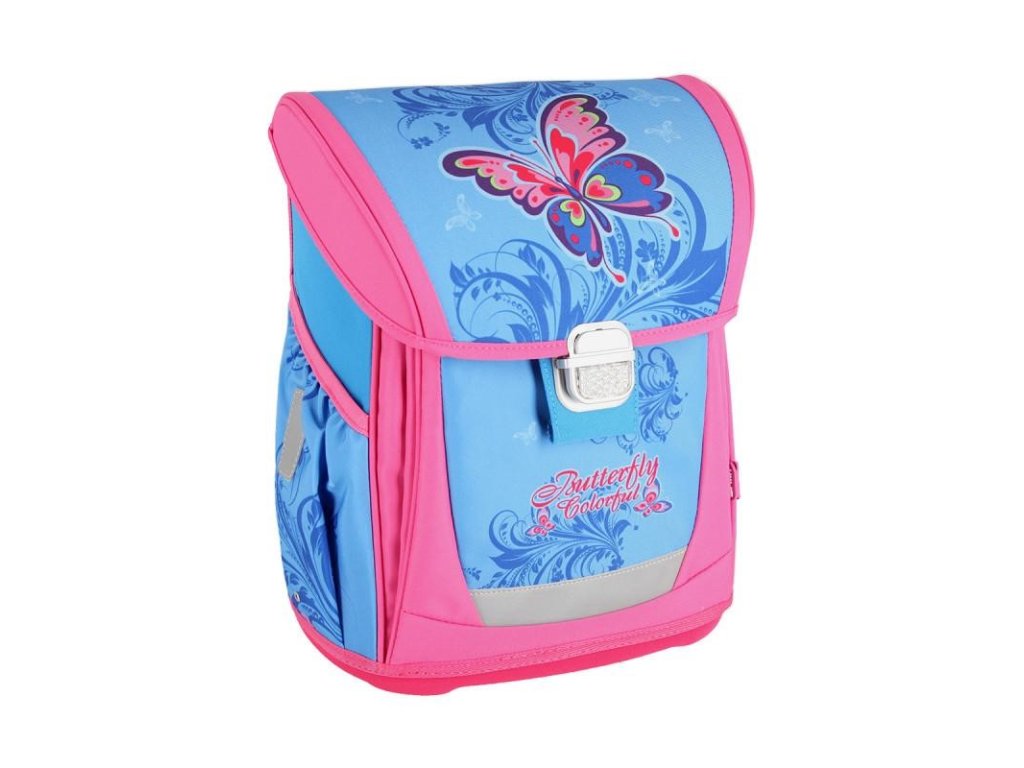 Sada obsahuje: školskú tašku, vrecko na prezúvky, dosky na zošity A4, okrúhle puzdro na písacie potreby (prázdne).