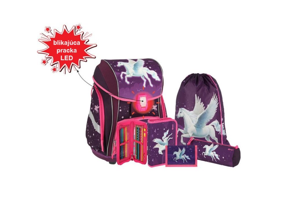 Set obsahuje: školní tašku, kapsu na přezůvky, 19-dílný penál, pouzdro na pera a peněženku. • moderní design s 3D potiskem, polyesterový materiál • nově vyvinutá přezka LED pro větší bezpečnost v noci • reflexní pásy, které zvyšují viditelnost a bezpečnost v noci • anatomicky tvarovaná záda pro snadnou cirkulaci vzduchu • hlavní přihrádka se dvěma dalšími kapsami, elastickým pásem pro zadržení vašich knih a prostorným úložným prostorem • dvě boční kapsy na zip, přední kapsa s tepelnou izDoplňkové parametry
