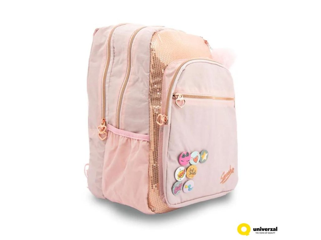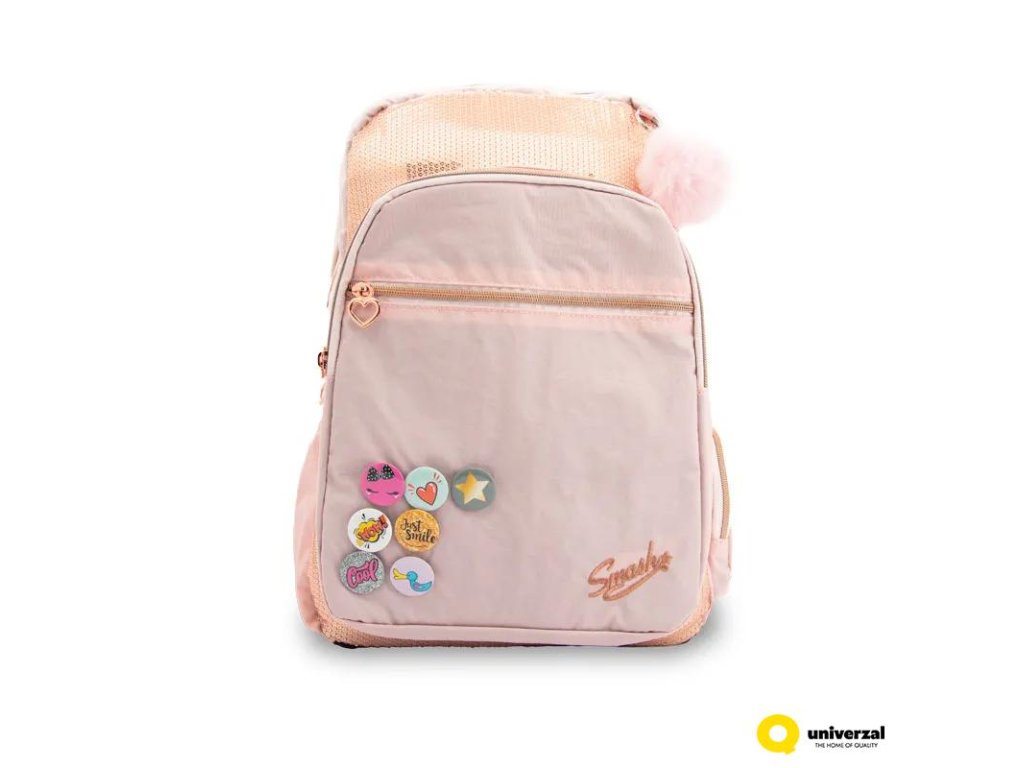 Školní batoh anatomický SMASH růžový s odznaky, rozměry 48 x 40 x 18 cm