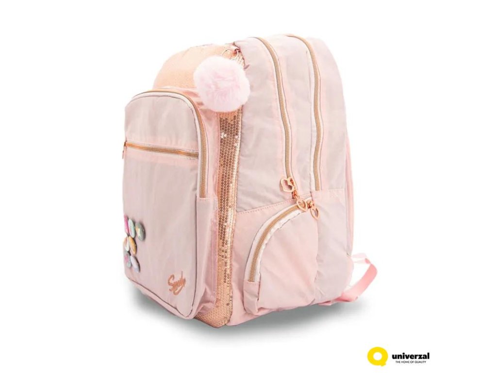 Vysoce kvalitní růžový batoh s odznaky. Batoh má na přední straně našité logo. Vlastnosti:- anatomická záda s vycpávkami pro pohodlné nošení- ramenní popruhy s popruhy pro regulaci výšky batohu- jedna otevřená boční kapsa- jedna boční kapsa na zip se srdcem barvy růžového zlata- dvě velké dvojité přihrádky na zip se srdíčky - jedna přední kapsa na zip - jedna menší přední přihrádka na zip se srdíčkem- rukojeť pro přenášení- zesílené dno- rozměry 48 x 40 x 18 cmDoplňkové parametry