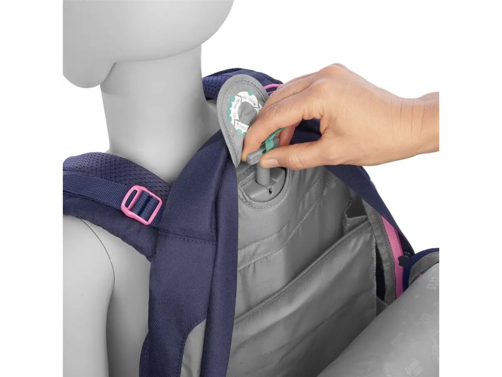 zaisťuje presné nastavenie ramenných popruhov priamo na chrbte dieťaťa (ergonomické prispôsobenie podľa veľkosti chrbta)