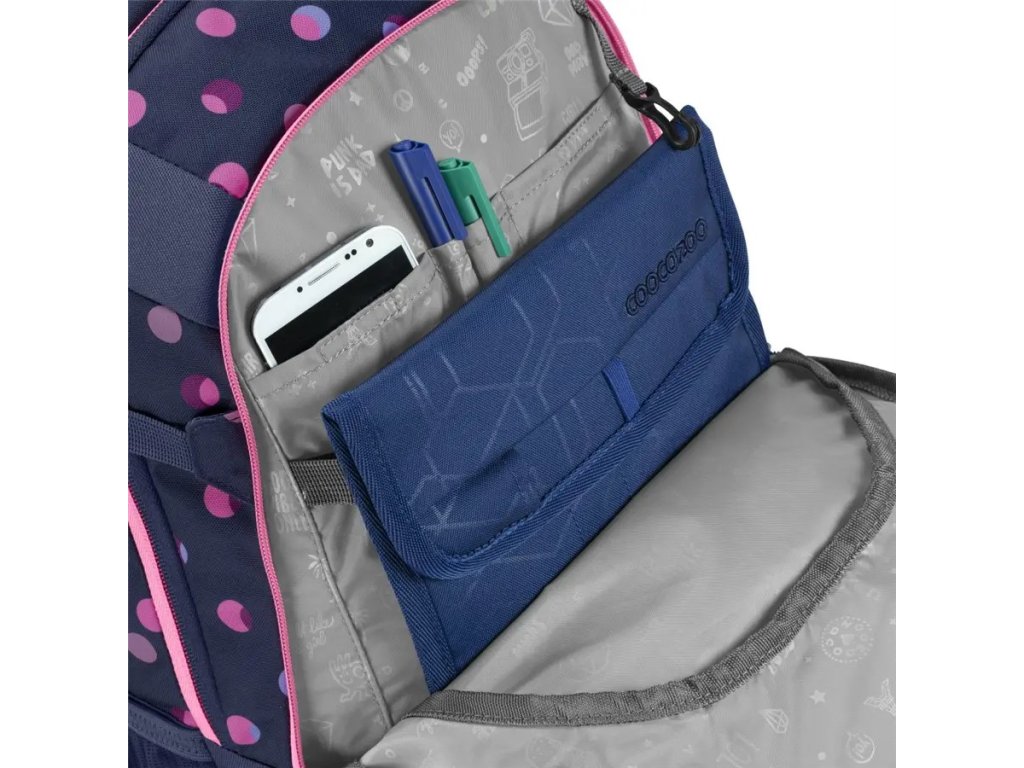 · ruksak má 4 vrecká, 2 veľké hlavné priečinky poskytujú dostatok miesta pre notebook 15,6“, knihy a zošity až do veľkosti A4,