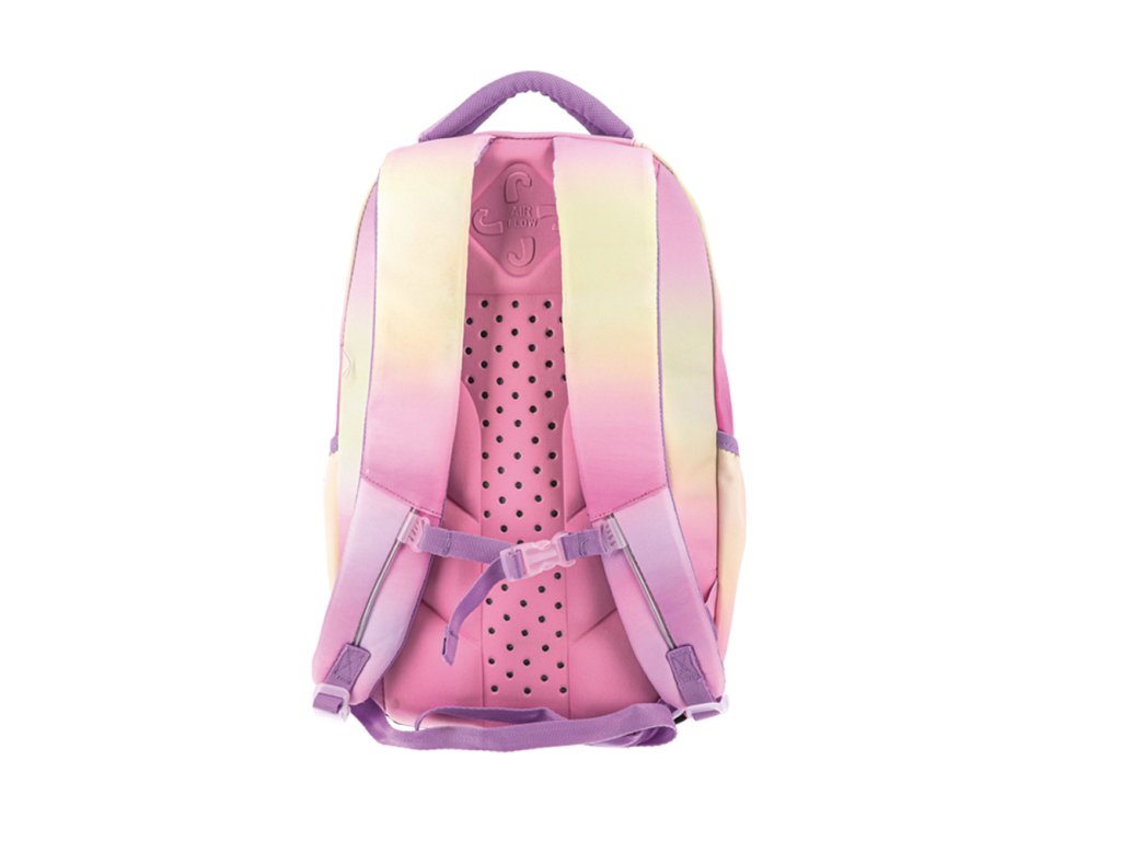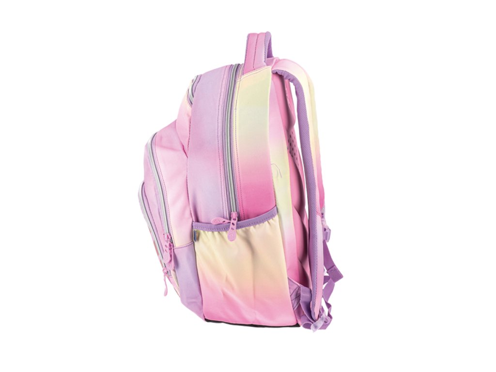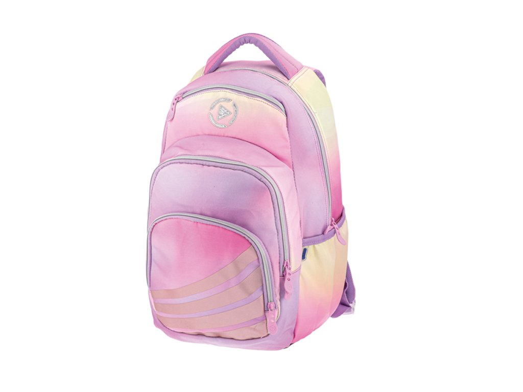 Jednokomorový školský batoh v svetlých, farebných tónoch západu slnka.