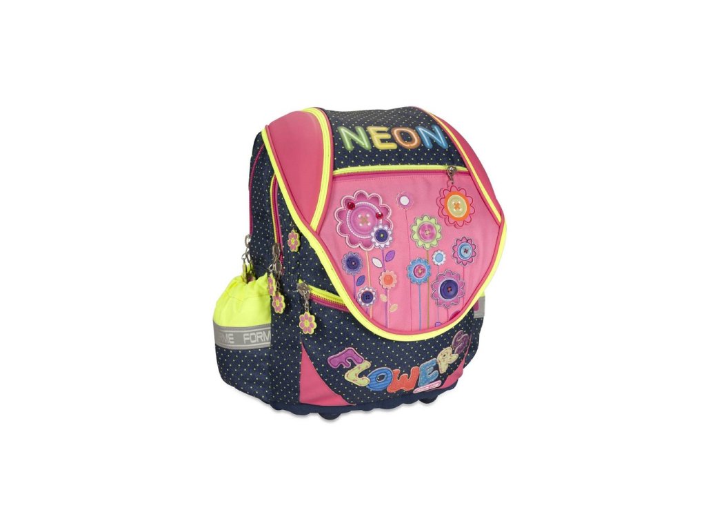 Školní batoh FOR ME - modro/růžový, NEON FROWERS