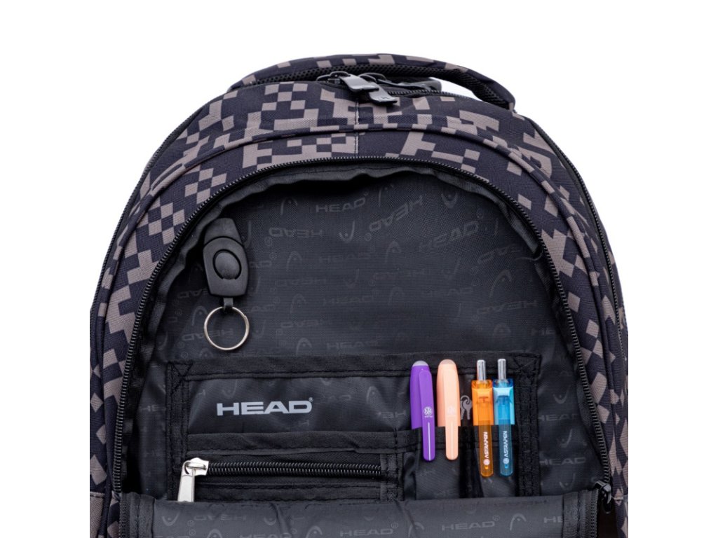 Batoh Head je navržen tak, aby vyhovoval všem vašim potřebám. Tříkomorový hlavní prostor pojme všechny učebnice a sešity velikosti A4, zatímco samostatná polstrovaná přepážka ochrání váš laptop. Malá kapsička na zip je ideální pro uložení dokladů a cenností. Boční síťové kapsy jsou připraveny pojmout láhev s vodou, aby vaše dítě zůstalo hydratované během náročného školního dne.