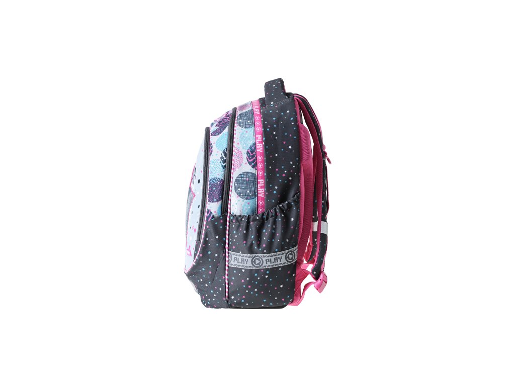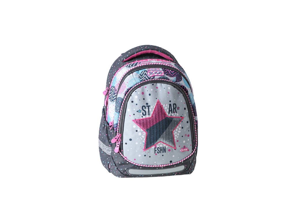 Školní batoh Maxx Play, Star Fashion: • moderní design, polyesterový materiál / 600D • anatomicky tvarovaná záda pro snadnou cirkulaci vzduchu • dva přední nastavitelné popruhy • dvě horní rukojeti, plně lemované a pohodlné popruhy • reflexní pásy, které zvyšují viditelnost a bezpečnost v noci • vnitřní příčka s jednou velkou kapsou a elastickou gumou • dvě boční elastické kapsy • silné a stabilní dno • rozměry: 41x31x21 cm. Hmotnost: 920 g. Objem: 26 L.Doplňkové parametry