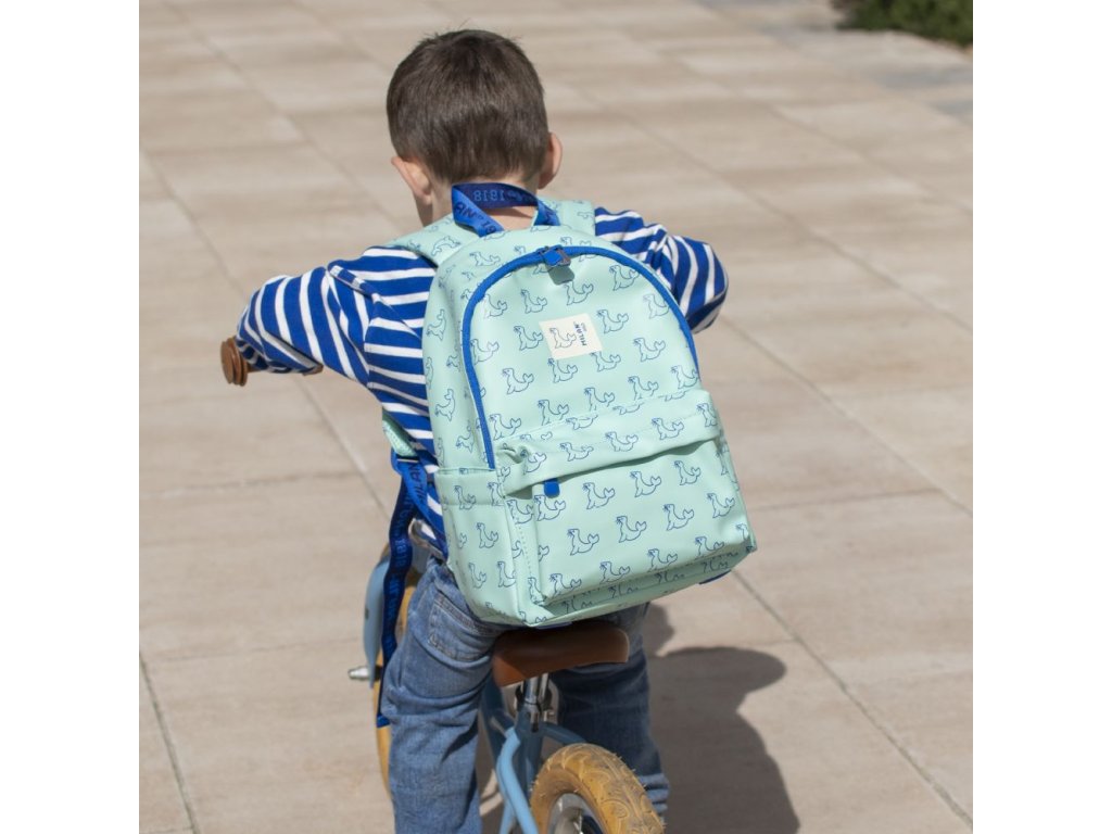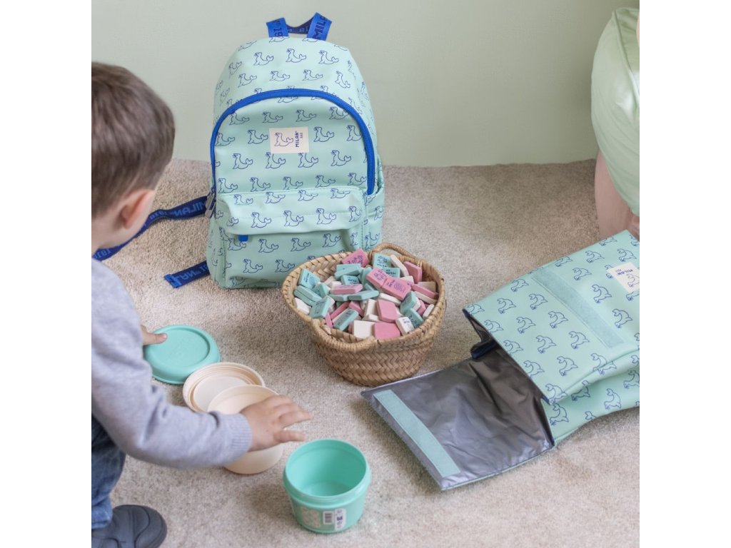 Menší školský batoh so vzorom veľryby.