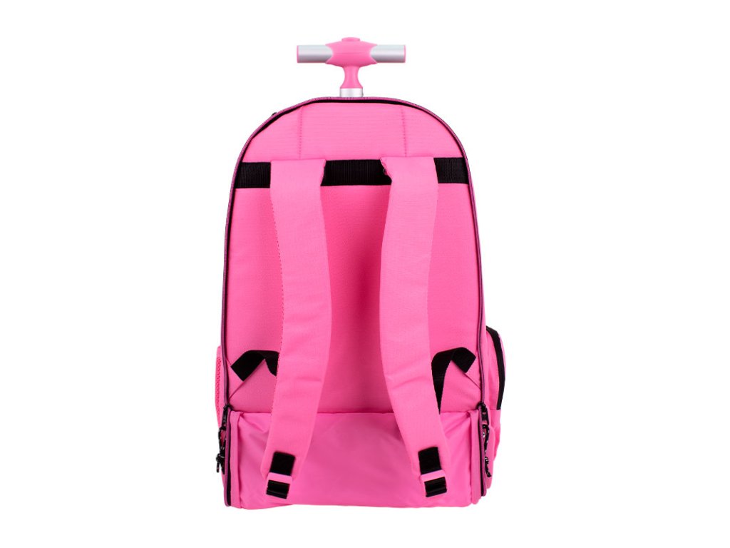 Školní batoh na kolečkách s kovovou výsuvnou rukojetí 1m. Batoh má celkem 6 komor - 6 zipů. Jedna hlavní přihrádka s přihrádkou na notebook. 3 přední kapsy, jedna z nich s organizérem a odnímatelnou klíčenkou. Jedna snadno přístupná boční kapsa ze síťoviny a jedna boční kapsa na zip. Přední kapsa má na zipu kroužek na klíče a gumu. Nastavitelné popruhy, zpevněná základna a kryt kol. Ramenní popruhy a rukojeť lze zcela skrýt.Doplňkové parametry
