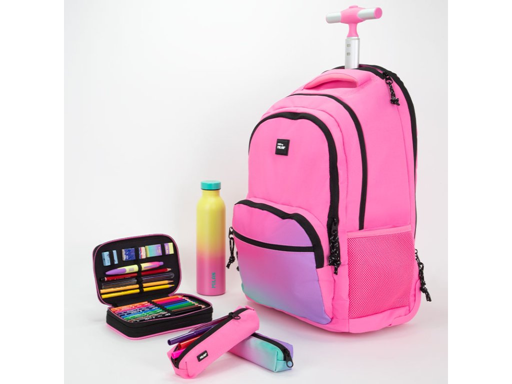 Školní batoh na kolečkách MILAN (25 l) série Sunset, růžový
