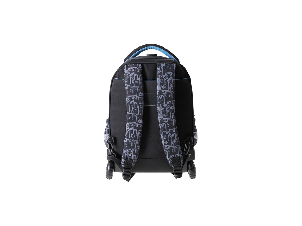 Školní batoh na kolečkách Smart Trolley Spider-Man: • kvalitní a odolný batoh na kolečkách • robustní a stabilní konstrukce • vysouvací ručka, stabilní nožky, dvě kolečka, dva přední nastavitelné popruhy • moderní design, polyesterový materiál, nepromokavá tkanina • anatomicky tvarovaná záda pro snadnou cirkulaci vzduchu • dvě horní rukojeti, plně lemované a pohodlné popruhy • reflexní pásy, které zvyšují viditelnost a bezpečnost v noci • vnitřní příčka s jednou velkou kapsouDoplňkové parametry