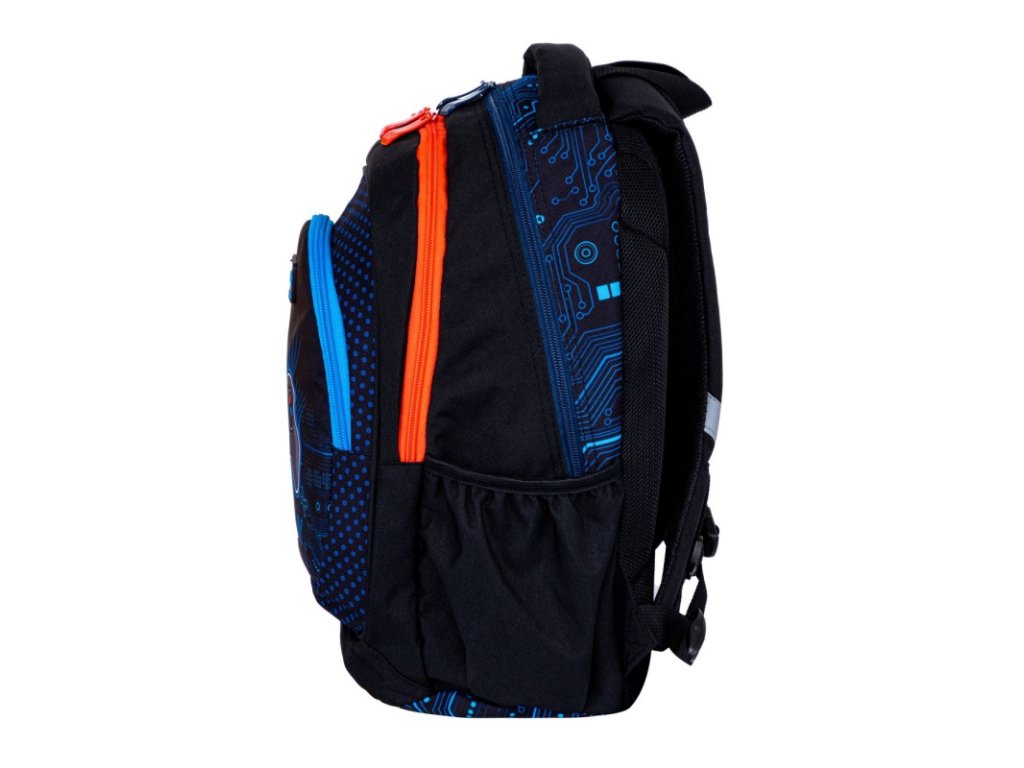 Batoh nabízí dostatek prostoru díky třem přihrádkám, které pojmou všechny učebnice, sešity a další školní pomůcky. Organizér s kroužkem na klíče v přední přihrádce udrží drobnosti přehledně uspořádané. Dvě boční kapsy ze síťoviny jsou ideální na láhev s vodou nebo svačinu.