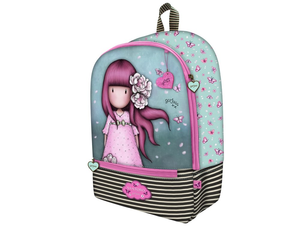 PopisTento školní batoh má celkem dvě komory, které mají pouze jeden hlavní prostor. Zadní komora má vyztužené dno, dvě našité kapsy např. na mobil a jednu kapsu na zip. Obě dvě komory se uzavírají na dvoucestný zip. Všechny zipy jsou ozdobeny přívěskem. Záda batohu jsou polstrovaná, stejně jako popruhy, které jsou nastavitelné. Na přední straně je ještě jedna kapsa uzavíratelná na zip. Panenka Gorjuss je vyobrazena na třpytivé látce. Podrobný popis: 2 komory bez přihrádek 1 komora má uvnitř 2 volné kapsy + 1 kapsu s uzavírání na zip vystužené dno polstrovaná záda polstrované a nastavitelné popruhy materiál:polyester, pevné části:polyuretan poutko na přenášení v ruce rozměry: 32 x 45 x 13,5 cm Obchodní informace: výrobce: Santoro London kolekce: Gorjuss Sparkle/Bloom motiv: Cherry Blossom dovozce: Reas-Pack s.r.o.Doplňkové parametry