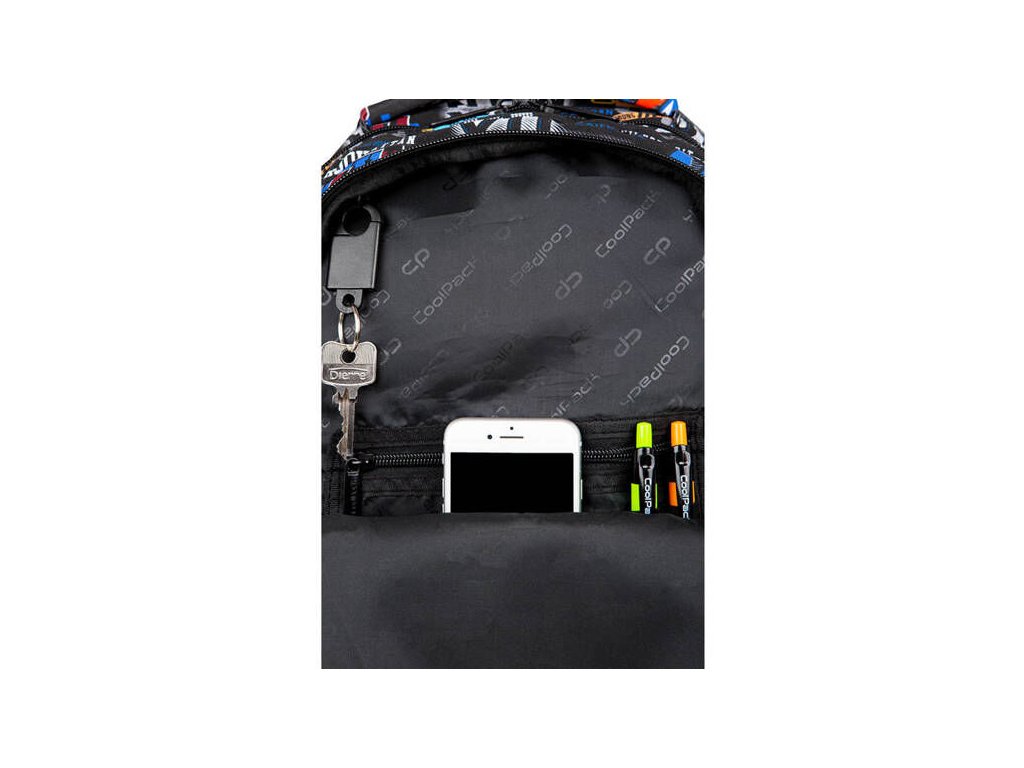 Batoh do školy CoolPack Spiner 16˝ • 3komorový • zpevněná záda batohu • polstrované nastavitelné ramenní popruhy • polstrovaná rukojeť • zpevněné dno • boční kapsy na láhev s vodou • přední kapsa s termoizolací • objem: 24 l • reflexní prvky • kapsička na zip a poutko na klíče • velikost MDoplňkové parametry