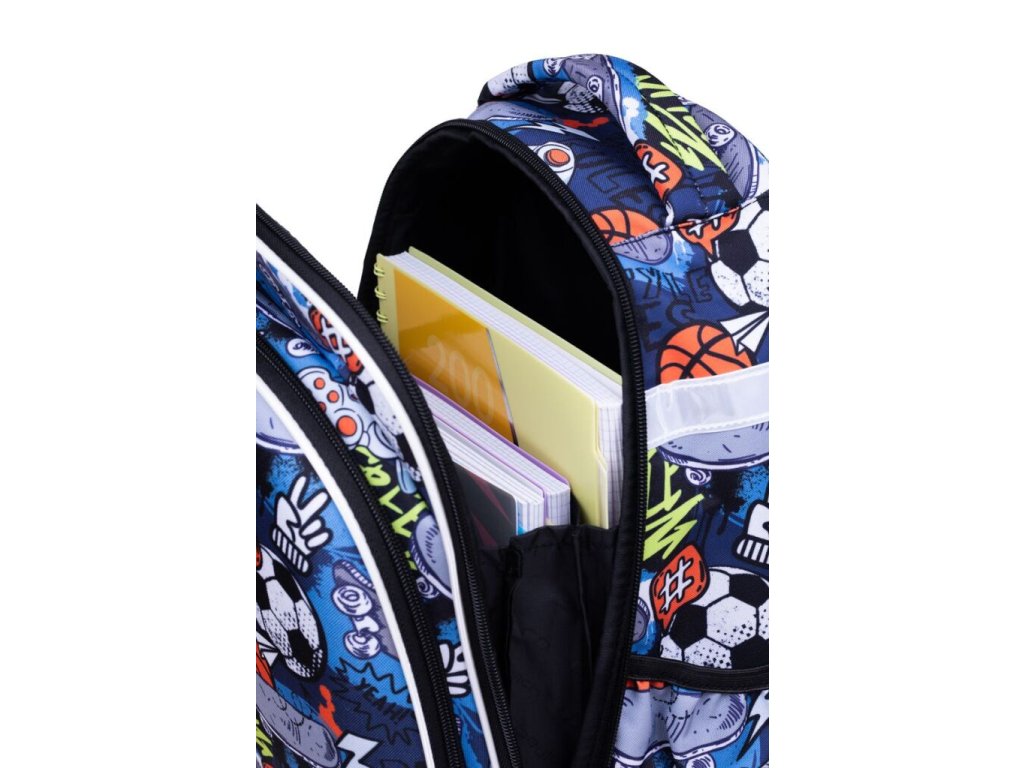Školní ultralehká aktovka CoolPack Turtle z nepromokavé látky • prostorná hlavní přihrádka • přední přihrádka s organizérem • 2 boční kapsy • ergonomický tvarovaná záda s možností regulace dle velikosti dítěte (velikost S, M nebo L) • měkké, nastavitelné ramenní popruhy • hrudní popruh • zpevněný korpus • zesílené dno • reflexní prvky pro větší bezpečnost • voděodolný • tkanina: polyester 600D • objem: 25 lDoplňkové parametry