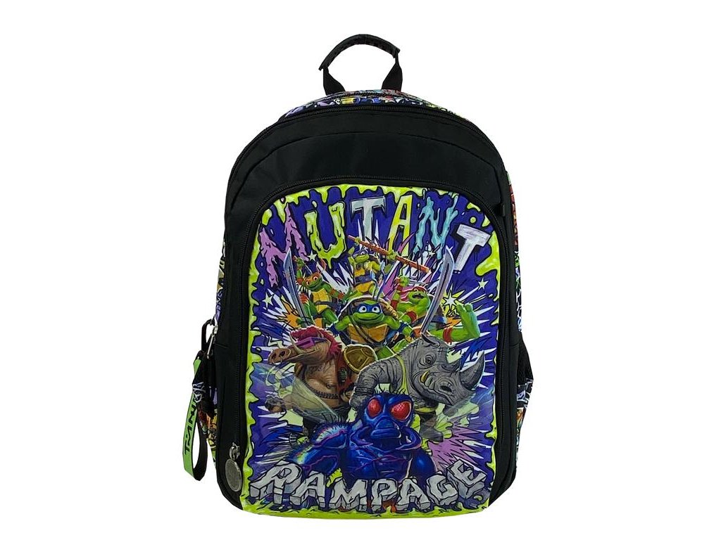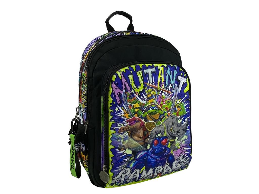 Krásný školní batoh s motivem Želvy Ninja. Kompletní batoh se 3 velkými přihrádkami, dvěma bočními kapsami na láhve s vyztuženou síťovinou. Nastavitelné, polstrované a ergonomické popruhy pro lepší uchycení na záda, polstrovaná zádová opěrka pro větší pohodlí. Má zesílenou horní rukojeť pro snadné uchopeníJeho barevný a originální design spolu s detaily, jako je vyražené logo, dělají z tohoto batohu perfektní doplněk pro fanoušky této známé postavy. Rozměry 43 x 16 x 29cmDoplňkové parametry