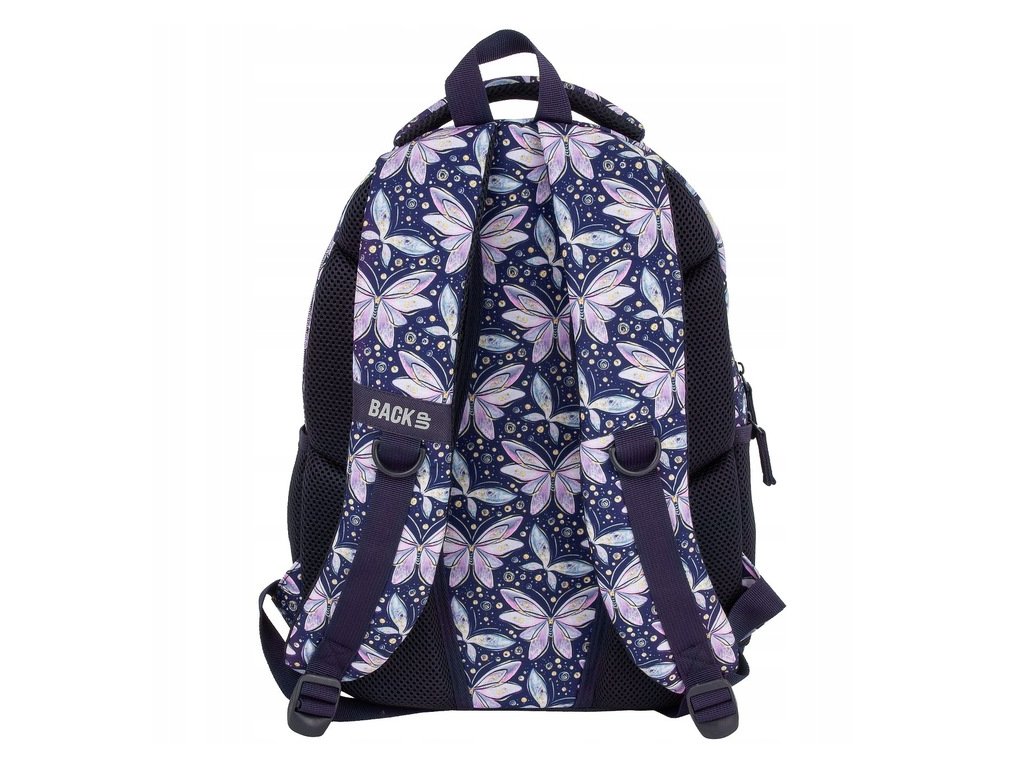 Prostorný batoh s motivem motýli je opravdovým kouzlem v každém detailu. Tmavě modré pozadí v kombinaci s fialovými a růžovými vílami zdobenými zlatými akcenty vytváří nevšední, pohádkovou atmosféru. Je to kombinace stylu a kouzel, která potěší každého malého snílka.Batoh BackUP má:
