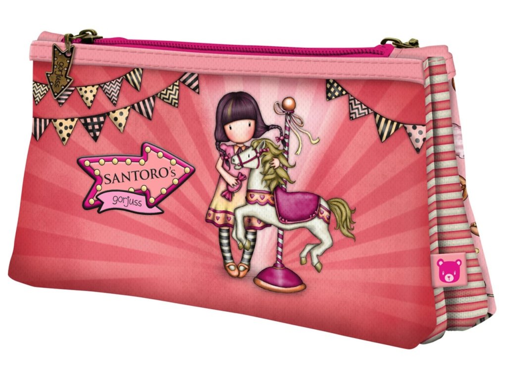 Tento penál má dvě na sobě nezávislé kapsy, které se uzavírají na zip. Zip má vždy na svém jezdci malou ozdobu. Panenka Gorjuss je vyobrazena na třpytivé látce. Penál Vám umožňuje přehlednější uspořádání psacích potřeb. Podrobný popis: 2 kapsy uzavírá na zip motiv panenky Gorjuss je na třpytivé látce rozměry: 21,5 x 11,5 x 5 cm Obchodní informace: výrobce: Santoro London kolekce: Gorjuss motiv: CarouselDoplňkové parametry