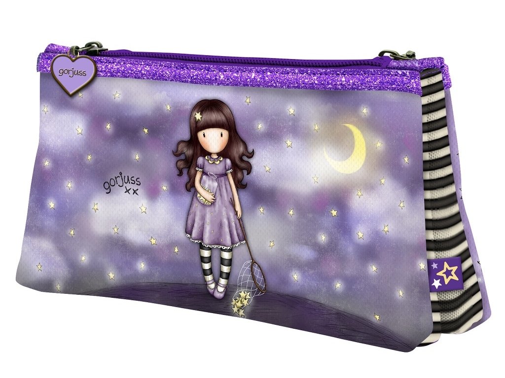 Tento penál má dvě na sobě nezávislé kapsy, které se uzavírají na zip. Zip má vždy na svém jezdci malou ozdobu. Panenka Gorjuss je vyobrazena na třpytivé látce. Penál Vám umožňuje přehlednější uspořádání psacích potřeb. Podrobný popis: 2 kapsy uzavírá na zip motiv panenky Gorjuss je na třpytivé látce rozměry: 21,5 x 11,5 x 5 cm Obchodní informace: výrobce: Santoro London kolekce: Gorjuss Sparkle/Bloom motiv: Catch A Falling StarDoplňkové parametry