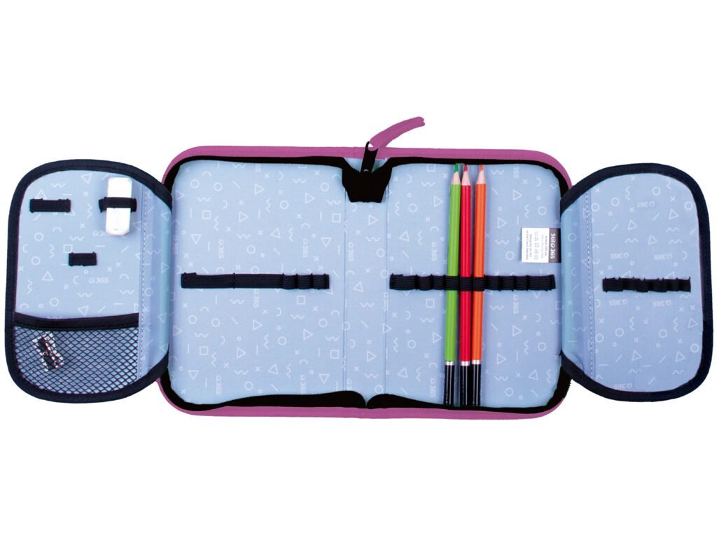 Jednopatrové penály mají velkou kapacitu k umístění psacích potřeb. Přesně 24 pevných gumiček různých velikostí slouží k pohodlnému uložení pastelek, psacího pera, tužek, pravítka, ořezávátka a gumy. Vyšší hřbet penálu pojme ještě více psacích a jiných potřeb. Chlopně mají na vnější straně průhlednou kapsičku na rozvrh či jiné malé dokumenty, na vnitřní straně je pak nová síťovaná kapsička pro uložení drobností. Dokonale barevně sladěný design s aktovkou či batohem je samozřejmostí. Penál je bez náplně. Rozměr: š. 19,5 x v. 13,5 x h. 4,5 cm. Určeno: pro holky. Určeno pro: I. stupeň.Doplňkové parametry