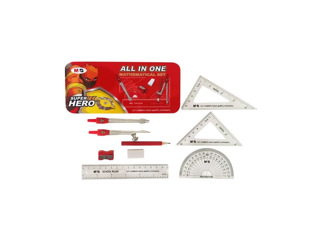 Školní rýsovací sada All In One 9 ks v kovové krabičce