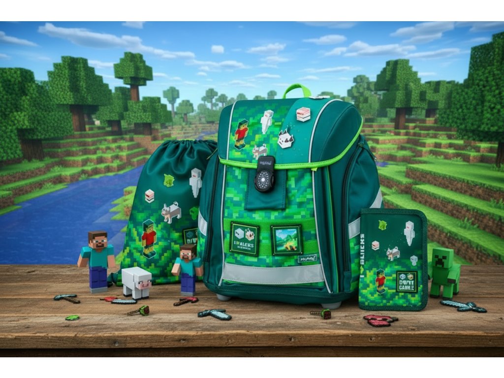 Připravte se na stavbu znalostí a těžbu zábavy! Tento stylový 3dílný školní set od Karton P+P a Oxybag s oblíbeným motivem Minecraftu je snem každého hráče. Nemusíte nic složitě shánět po kouskách – tato sada obsahuje vše, co malý školák potřebuje pro úspěšný a radostný návrat do školy. S lehkým a ergonomickým batohem bude cesta do školy i ze školy hračka!