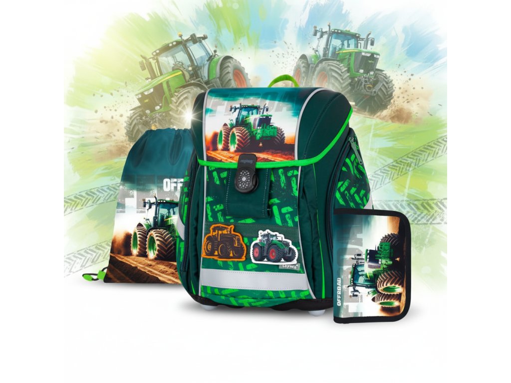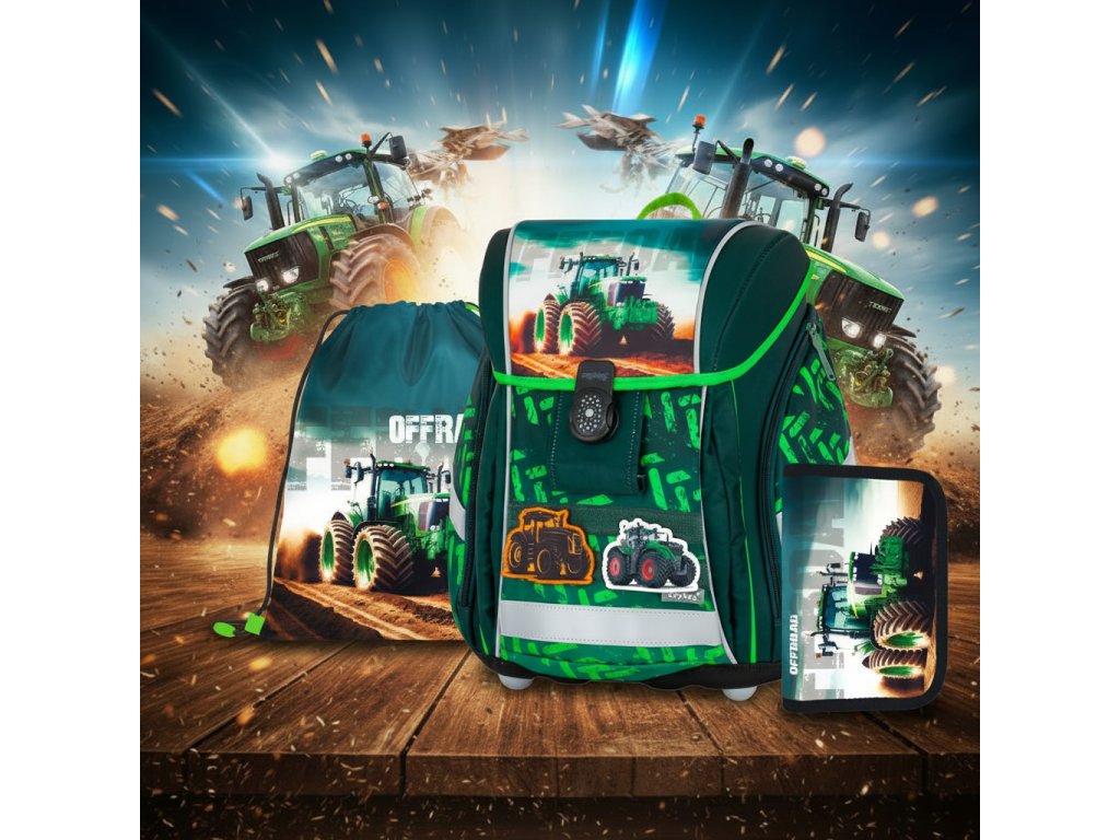 Ušetřete si starosti s vybíráním jednotlivých dílů a pořiďte svému školákovi kompletní, sladěnou a hlavně ergonomickou výbavu, která je šetrná k jeho zádům. S motivem traktoru bude každý den ve škole nebo na kroužku zábava! 🚜💨