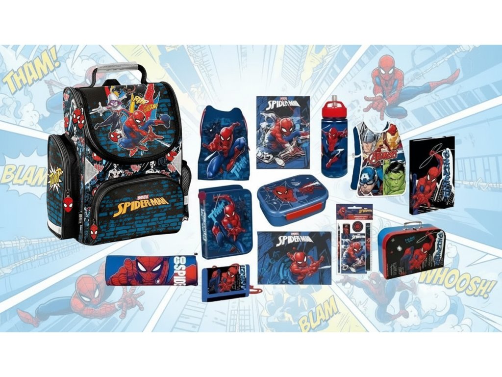 Školní set sada Spiderman 13 ks ŠKOLNÍ BATOH aktovka PO-SP23PA-525/013 aktovka, penál, pouzdro, sáček, zástěrka, kufr, box A4, láhev, box na svačinu, desky na sešity, psaníčko, set psacích potřeb, peněženka