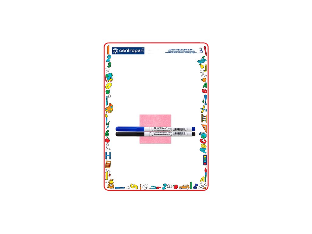 - oboustranně stíratelná tabulka A4 - s natištěnými linky a čtverečky - pro nácvik psaní, ale i kreslení - 2 značkovače art. 2507 - textilie na stíráníDoplňkové parametry