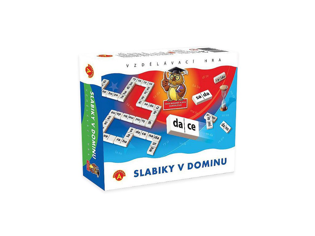 Didaktická hra určená pro předškoláky a především prvňáčky. Skládejte slova pomocí dominových kostek. Ideální pro procvičování čtení a psaní slabik. Balení obsahuje: 56 plastových kostek domina, tabulku s nápovědou slov, návod, žetonky, přesýpací hodiny. Pro děti od 5 let.Doplňkové parametry