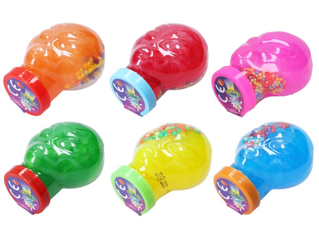 Sliz tvarovací Lebka 100g. Protahovací sliz je u dětí velmi oblíbený. Má antistresové účinky, můžete jej libovolně natahovat, mačkat, tvarovat a nalévat do ruky. S touto hmotou si užijete spoustu zábavy. Barevné provedení: modrá, zelená, červená, žlutá, růžová, oranžová. Velikost nádoby cca 5,5x5,5x8 cm. Doporučený věk 5+. Vybranou barvu prosím napište do poznámky k objednávce. Pokud si nevyberete žádnou barvu, zasíláme náhodně dle skladové dostupnosti.Doplňkové parametry