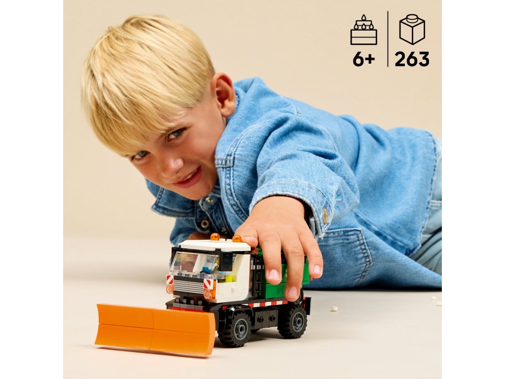 Potěšte malé hrdiny stavebnicí LEGO® City Sněžný pluh (60490) pro děti od 6 let. Děti můžou naklánět, zvedat a spouštět přední pluh, nakládat dílky LEGO v podobě soli do zásobníku a tlačit vozidlo, aby se aktivovala funkce sypání soli. Tento nákladní vůz má také dvoumístnou kabinu, kterou lze odklopit pro přístup k motoru, boční úložné boxy na dílky soli a spony pro uchycení nářadí. Přidejte minifigurku řidiče a můžete se pustit do napínavých dobrodružství plných odlízení sněhu. Model náklaďáku představuje skvělý dárek k narozeninám nebo k Vánocům pro kluky i holky, kteří mají rádi hraní s autíčky, stavění LEGO a vymýšlení příběhů. Zkombinujte stavebnici s dalšími z řady LEGO® City (prodávají se samostatně) a zažijte ještě větší dobrodružství. Děti si užijí stavění modelu vozidla LEGO s intuitivní aplikací LEGO Builder, která jim umožňuje přibližovat a otáčet model ve 3D a ukládat a sledovat postup stavění. Stavebnice obsahuje 263 dílků.Doplňkové parametry