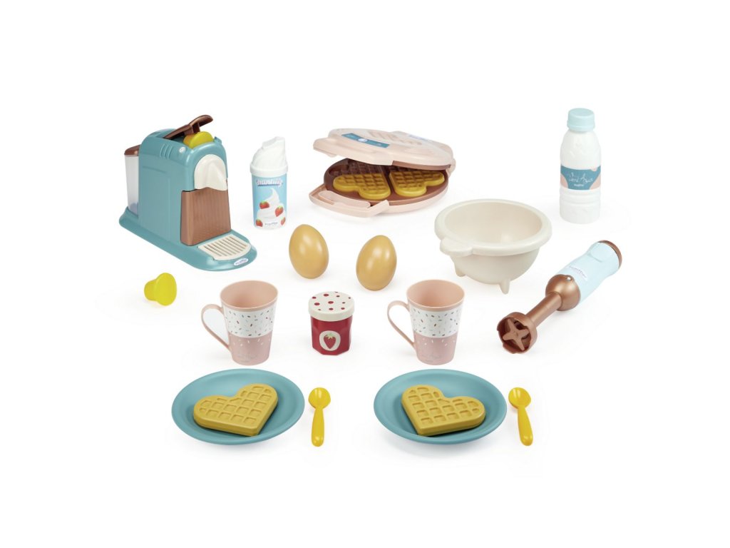 Sada 3 v 1 na přípravu snídaně obsahuje 3 spotřebiče - kávovar, vaflovač a tyčový mixér. Součástí sady jsou doplňky: 4 vafle, miska, 2 vejce, 2 kapsle do kávovaru, 2 šálky, láhev mléka, plechovka šlehačky a sklenice džemu. Rozměry výrobku: 22,5 x 17 x 14 cm.Doplňkové parametry
