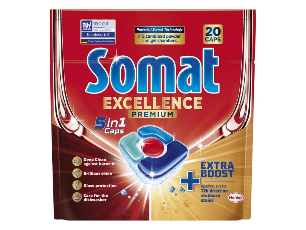 Somat Excellence 5v1 kapsle na nádobí - Navrženo tak, aby účinně odstraňovaly až 72 hodin zaschlé odolné skvrny a zajistily hloubkově čistý výsledek.Doplňkové parametry