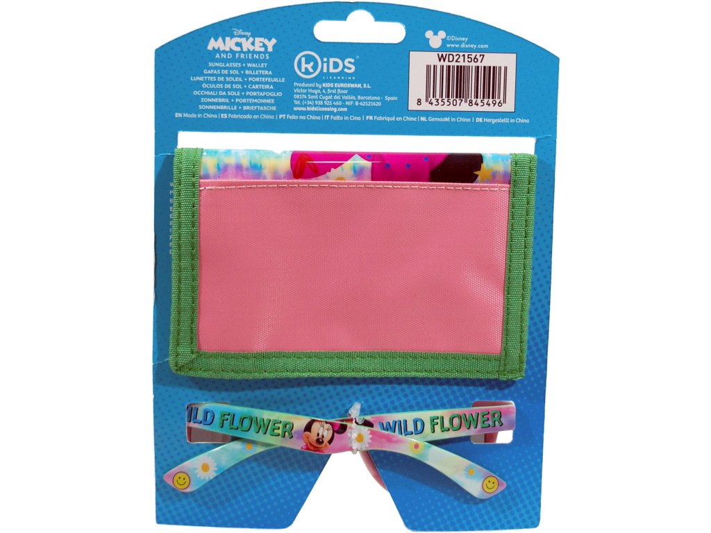 Brýle:100% UV ochrana. Velikost 3+, věkově cca 3 -10 let. Barva: růžovo - zelená. Peněženka: polyester + pu, 12,5 x 7,5 cm. Výrobce: Euroswan.Doplňkové parametry