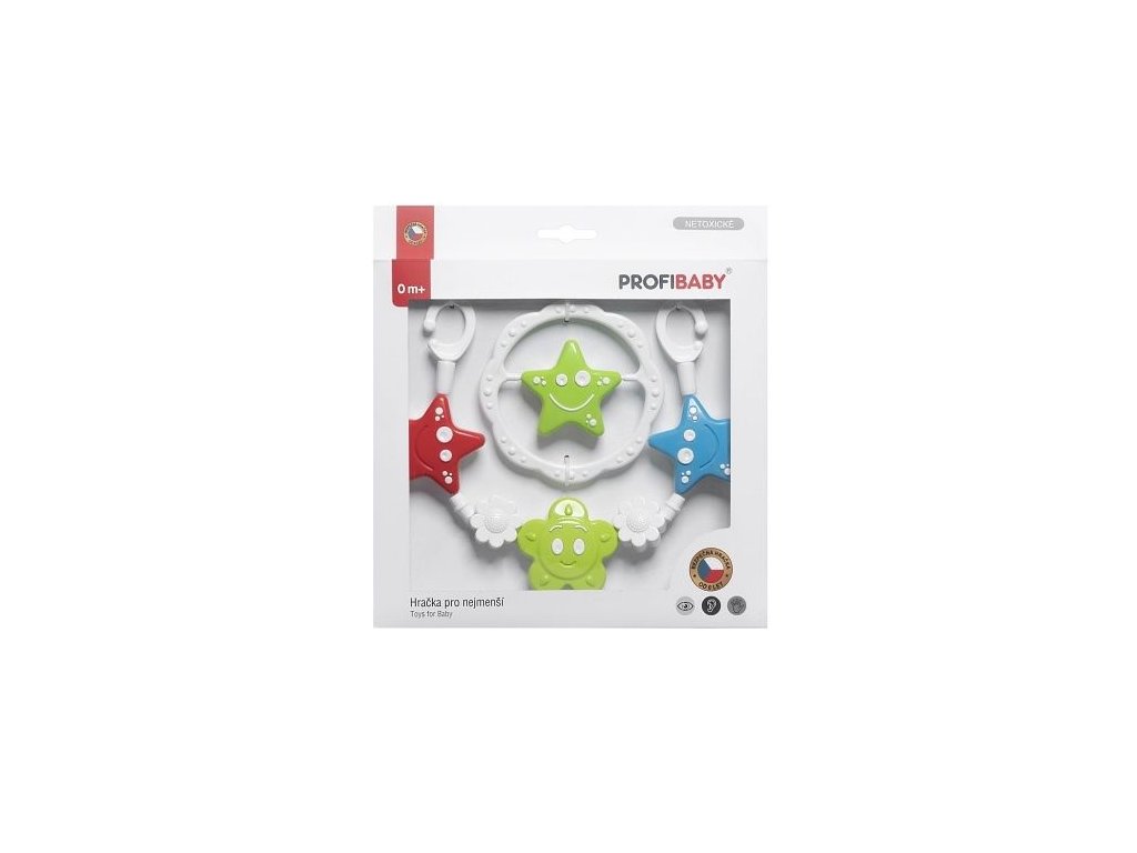 Hračka pro nejmenší. Sada obsahuje jak řetěz na kočárek tak také chrastítko. Tato barevná kombinace dokonale stimuluje zrak dítěte, které ještě nerozlišuje barvy. Hračka má lehkou konstrukci a správnou velikost pro ruku malého dítěte. Rozmanité struktury hraček rozvíjejí dotykové a oční smysly. Některé lehké zvuky stimulují sluchové smysly. Rozměry balení 26 x 28 x 4 cm. Vhodné pro děti od narození.Doplňkové parametry