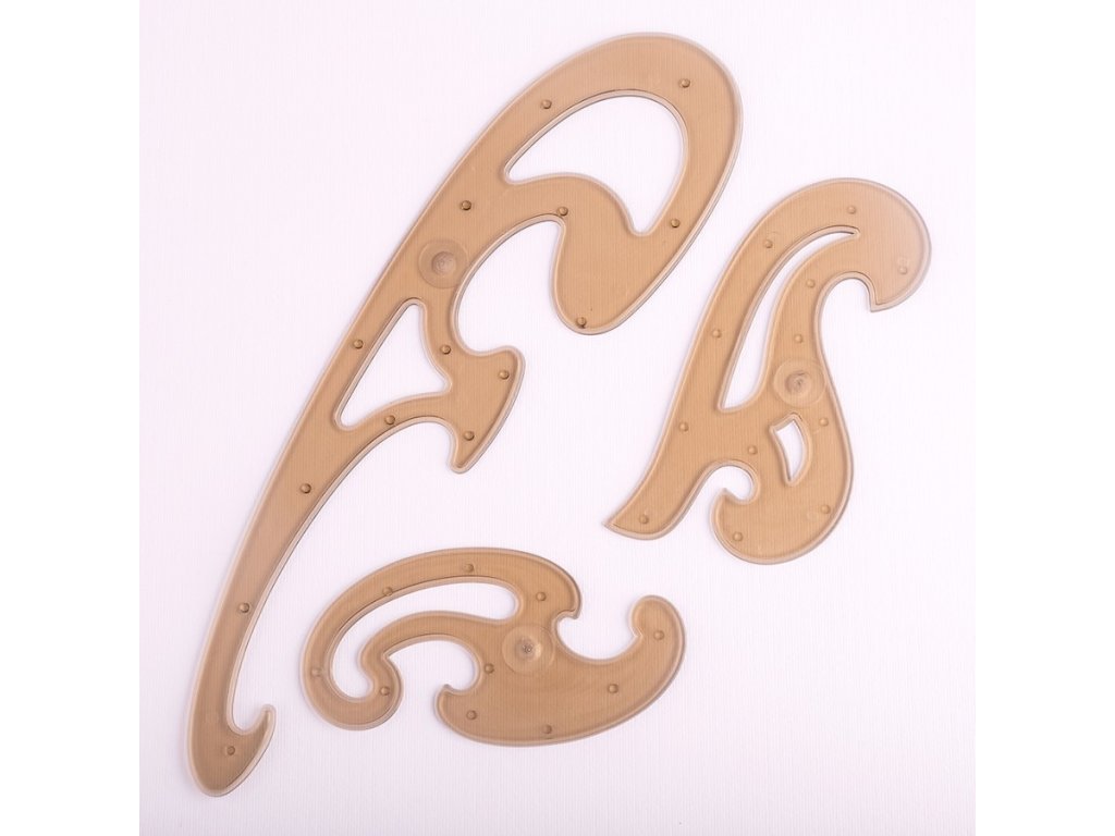 Sada křivítek pro rýsování křivek pomocí hrocené tužky nebo technického pera.