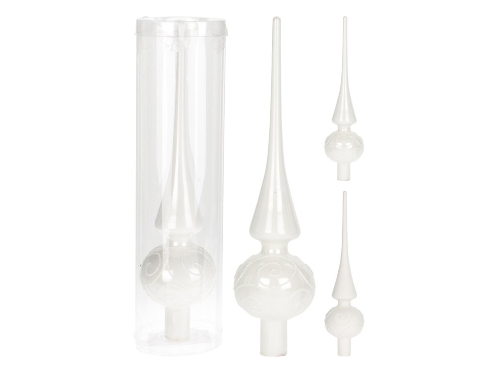 Špic na vánoční stromeček 25 cm bílý dekorovaný, mix matný/lesklý /1ks