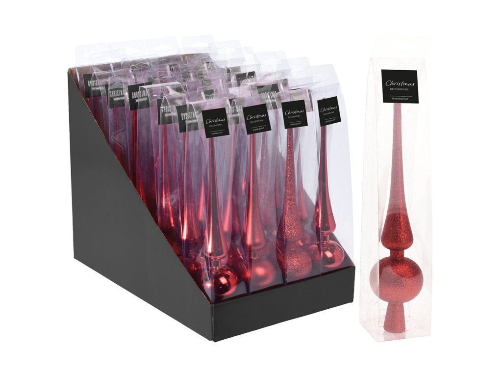 Špic na vánoční stromeček 275 mm, červená barva mix (3 varianty)