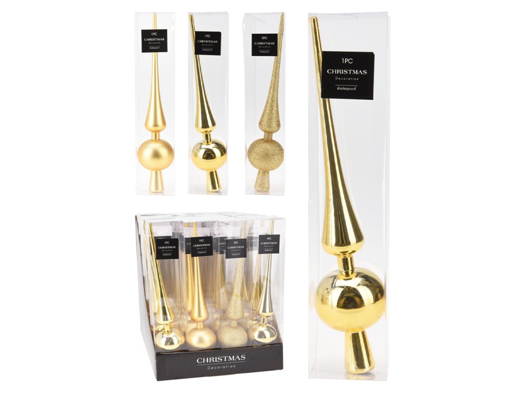 Špic na vánoční stromek 275 mm, zlatá barva mix (3 varianty)