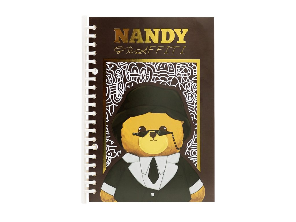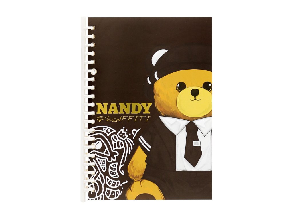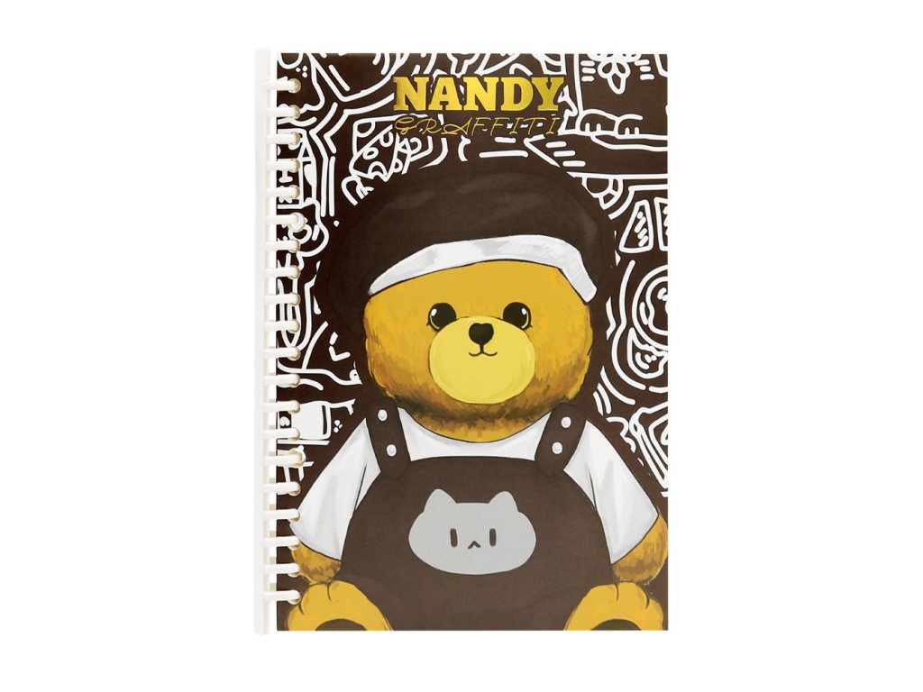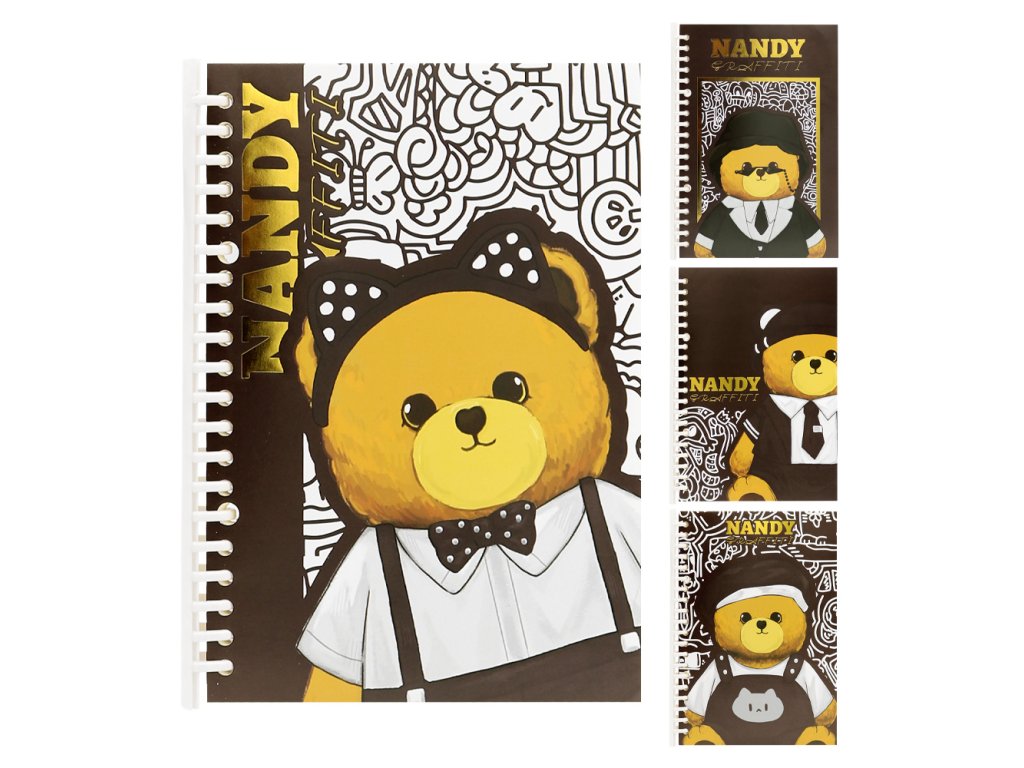 Odolný a pevný blok pro psaní Nandy Graffiti s rozebíratelnou spirálou, vhodný pro studenty, kanceláře, do skladů a pod. (medvídek ve 4 designech)