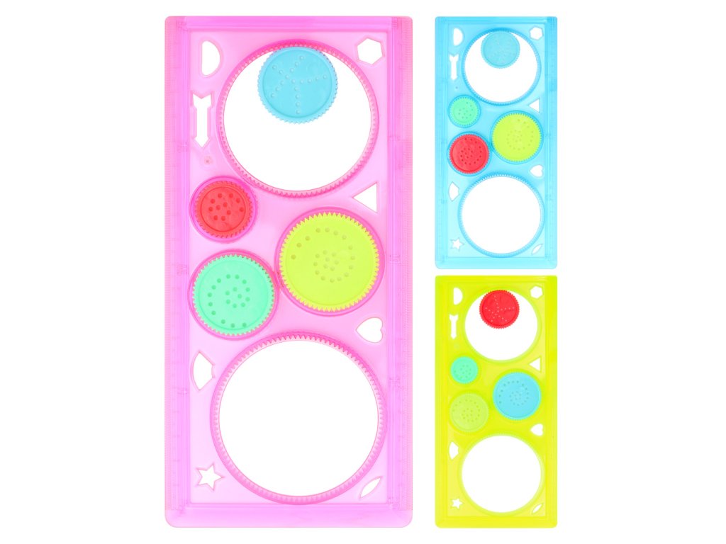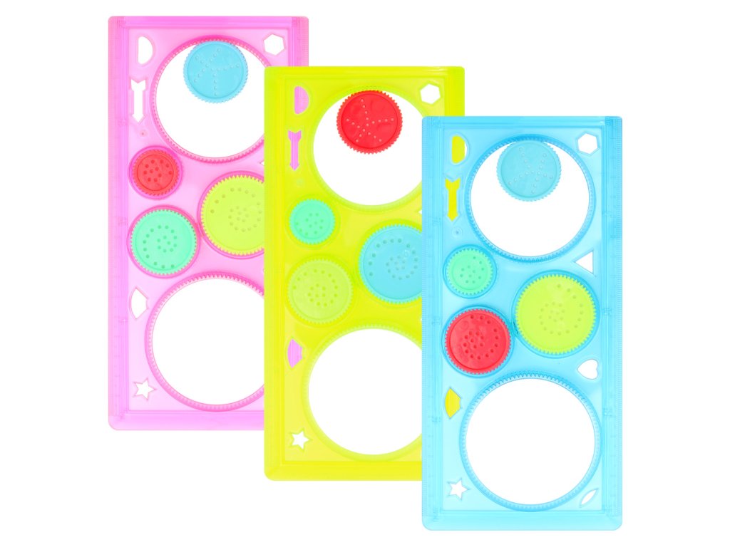 Spirografická šablona pro kreslení různých geometrických tvarů a obrazců (směs 3 barev)